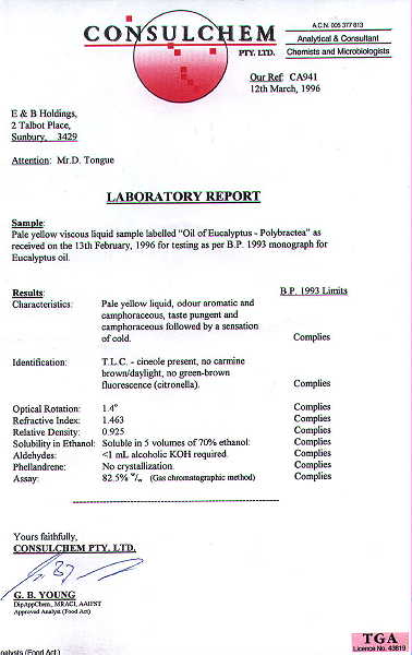 Warning :- Please note that Eucalyptus oil to BP 1993 is very strong, and can knockout small children with as little as 5 ml.