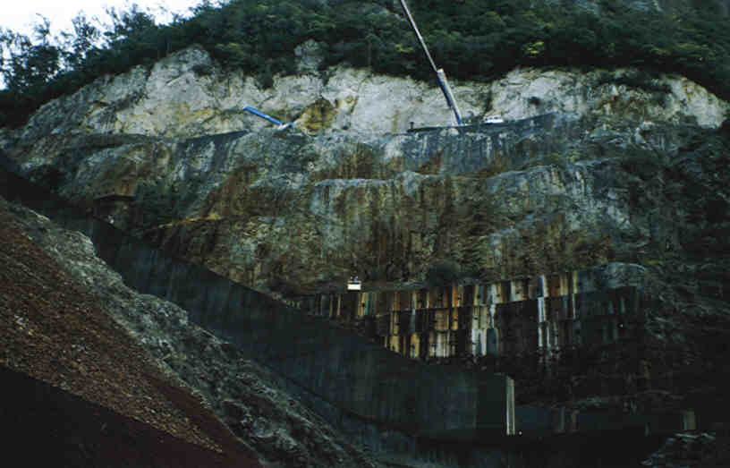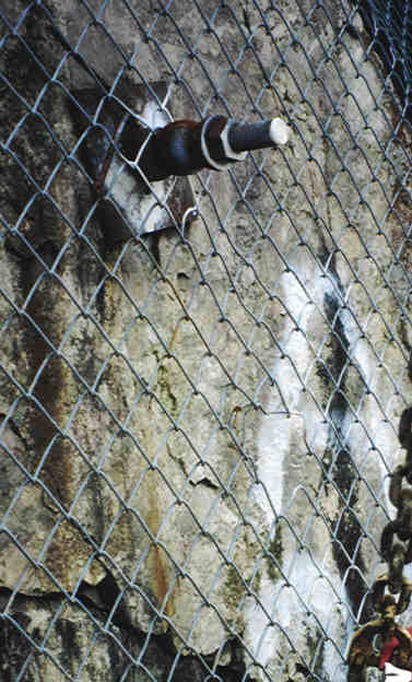 The bolt was probably hammered into a pre-drilled hole in to the rock. If it was an ungrouted anchor there would be a wedge leader such that the end of the anchor will be expand on fixing. This type of bolt is a mechanical anchor. In the photo left the rock bolt is acting in shear. There will be a tension component as this bolt is part of a large retaining system. In the diagram a few of the problems occurring with rock bolts is shown. Basically we measure the capacity of the bolt, how much load it can
